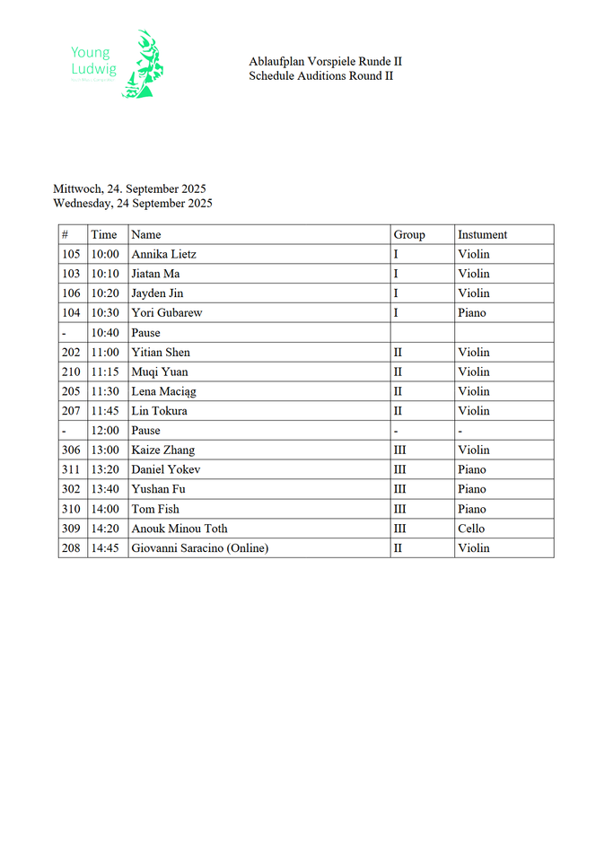 2nd Round Auditions - Schedule